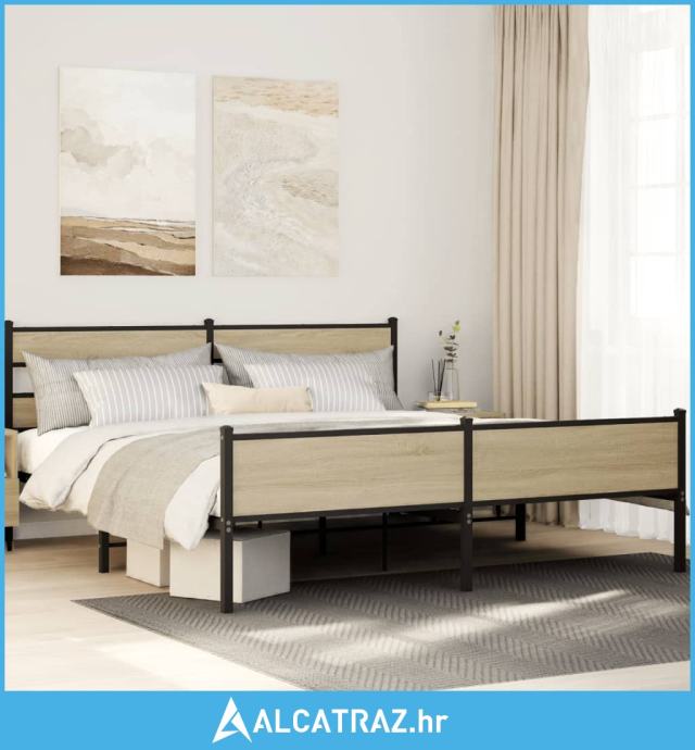 Metalni okvir kreveta bez madraca boja hrasta sonome 200x200 cm - NOVO