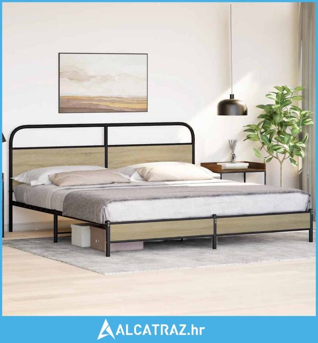 Metalni okvir kreveta bez madraca boja hrasta sonome 200x200 cm - NOVO