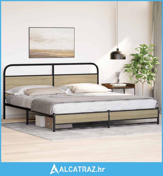 Metalni okvir kreveta bez madraca boja hrasta sonome 200x200 cm - NOVO