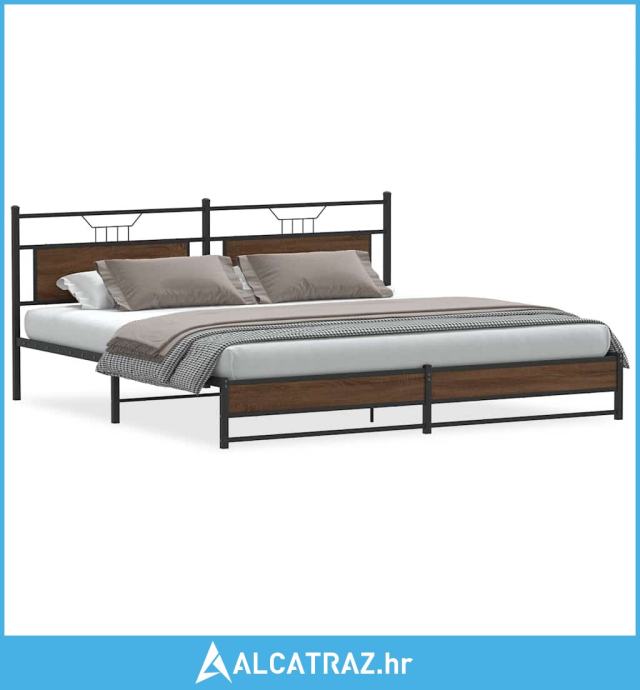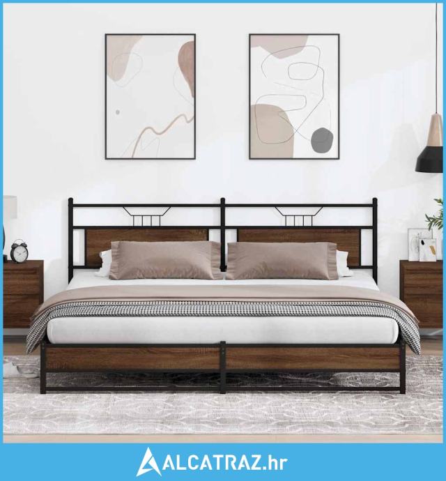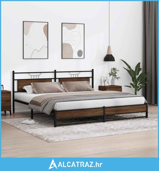 Metalni okvir kreveta bez madraca smeđa boja hrasta 193x203 cm - NOVO