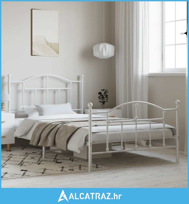 Metalni okvir kreveta uzglavlje i podnožje bijeli 100x200 cm - NOVO
