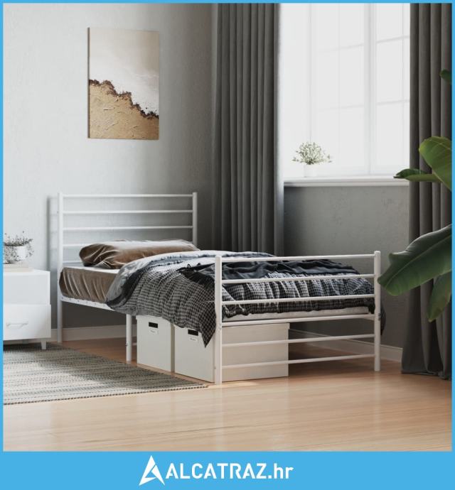 Metalni okvir kreveta uzglavlje i podnožje bijeli 107x203 cm - NOVO