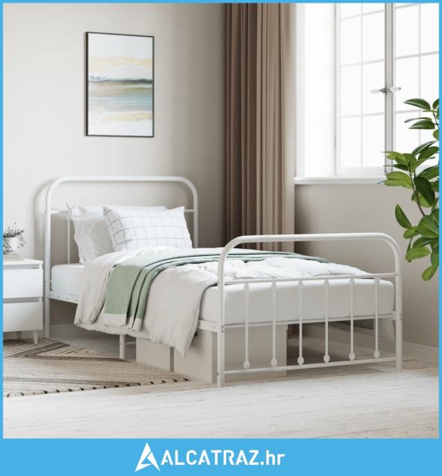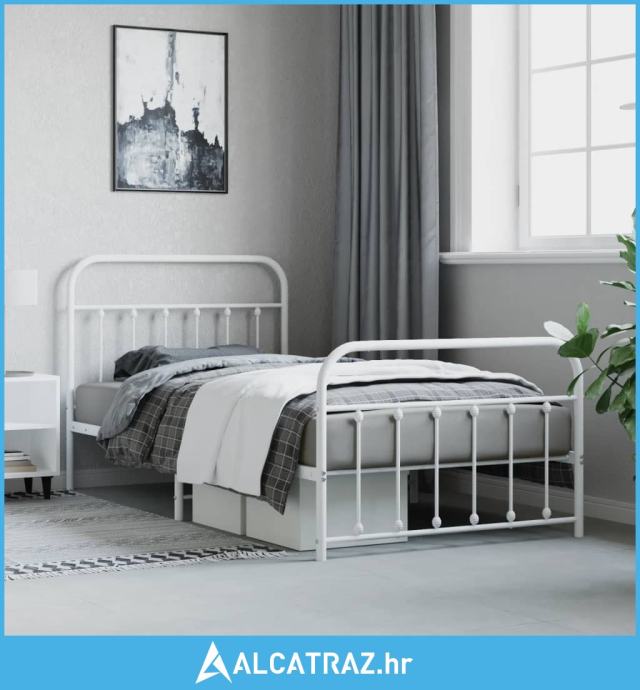 Metalni okvir kreveta uzglavlje i podnožje bijeli 107x203 cm - NOVO