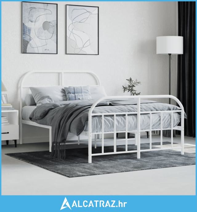 Metalni okvir kreveta uzglavlje i podnožje bijeli 120x190 cm - NOVO