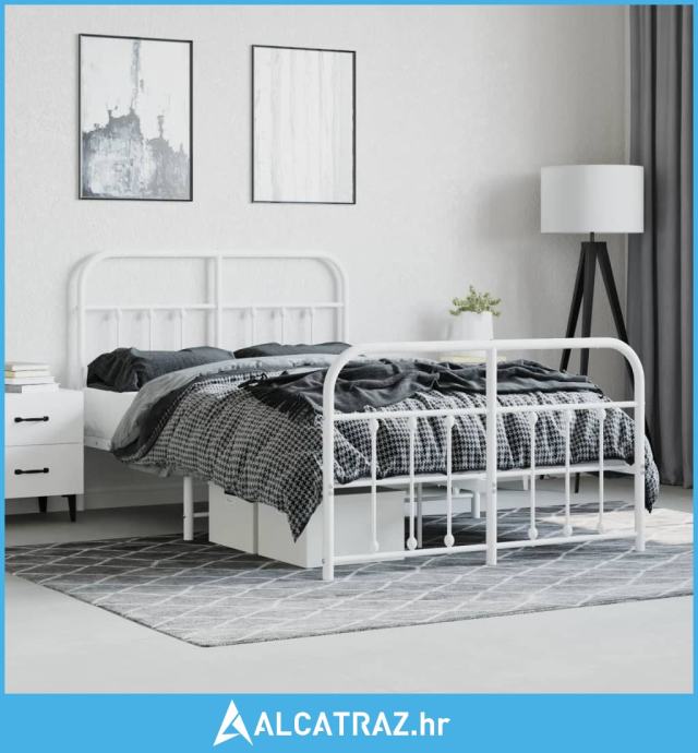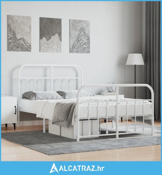 Metalni okvir kreveta uzglavlje i podnožje bijeli 120x190 cm - NOVO