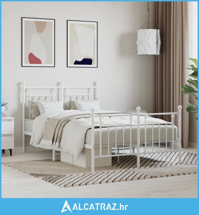 Metalni okvir kreveta uzglavlje i podnožje bijeli 120x200 cm - NOVO