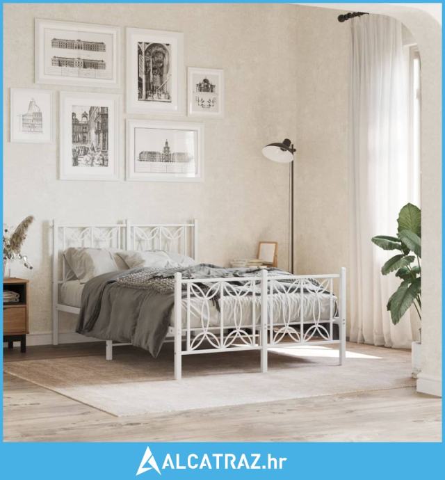 Metalni okvir kreveta uzglavlje i podnožje bijeli 120x200 cm - NOVO