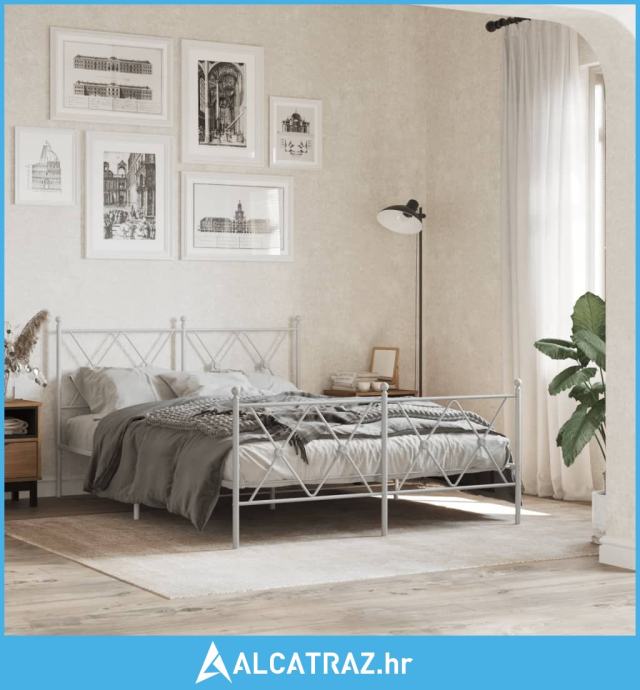 Metalni okvir kreveta uzglavlje i podnožje bijeli 137x190 cm - NOVO