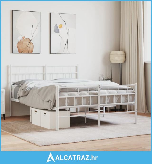 Metalni okvir kreveta uzglavlje i podnožje bijeli 140 x 190 cm - NOVO