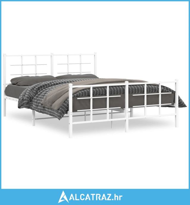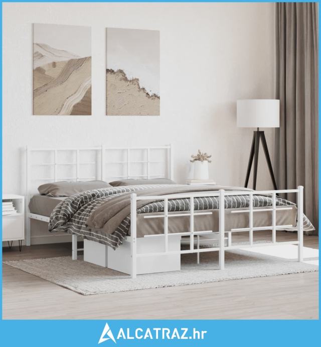 Metalni okvir kreveta uzglavlje i podnožje bijeli 150 x 200 cm - NOVO