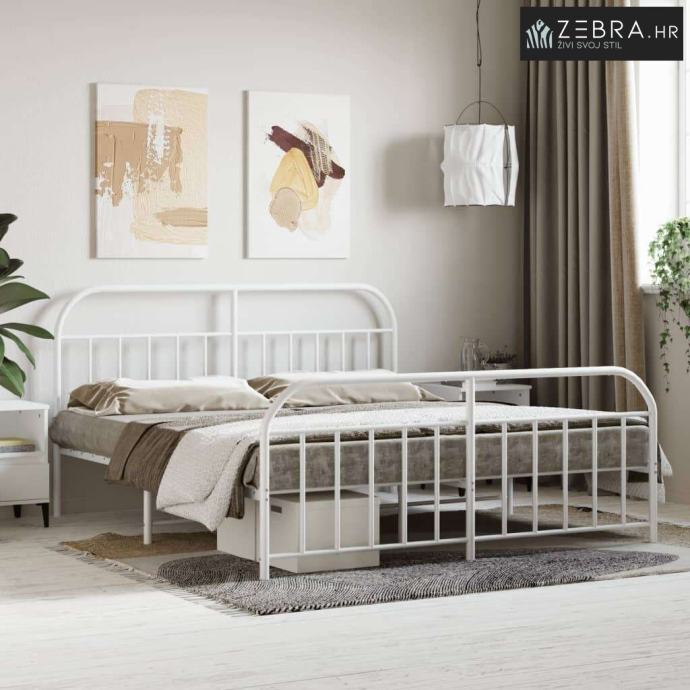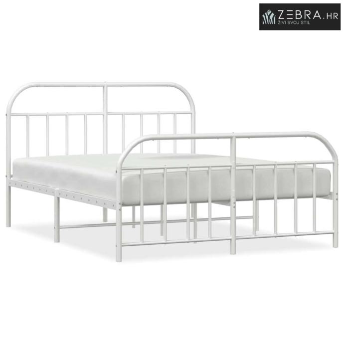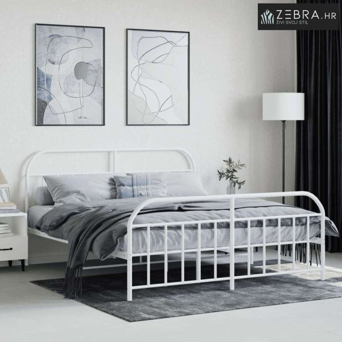 Metalni okvir kreveta uzglavlje i podnožje bijeli 160x200 cm - Bijela