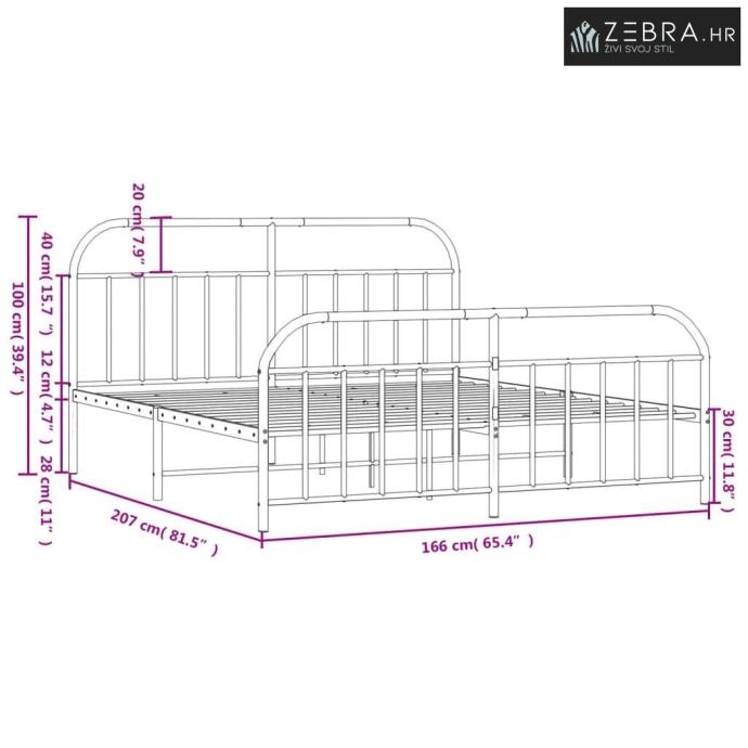 Metalne letvice i noge: Metalni okvir za krevet opremljen je metalnim letvicama i središnjim nogama kako bi pružio vašem madracu prijeko potrebnu potporu i prozračnost.