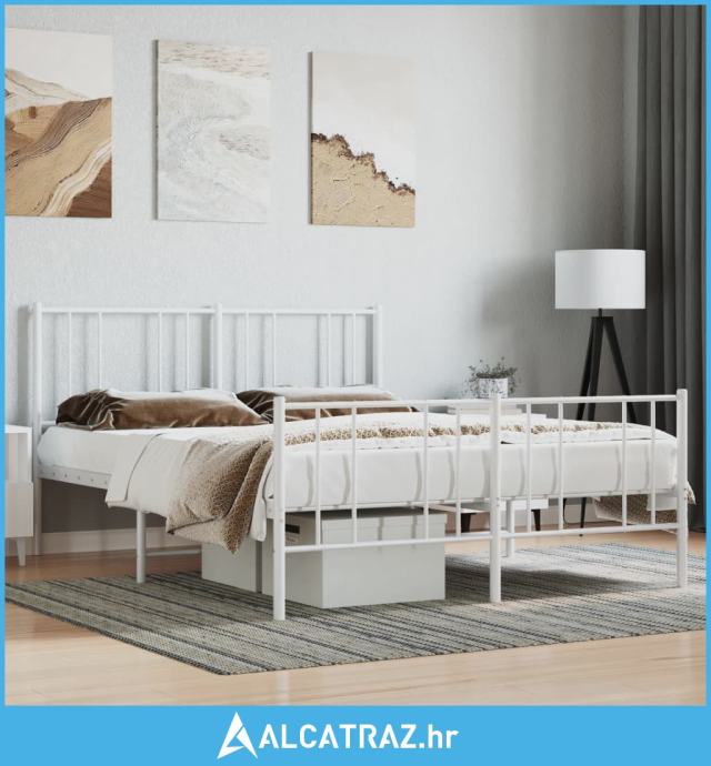 Metalni okvir kreveta uzglavlje i podnožje bijeli 160x200 cm - NOVO