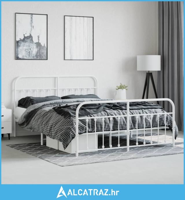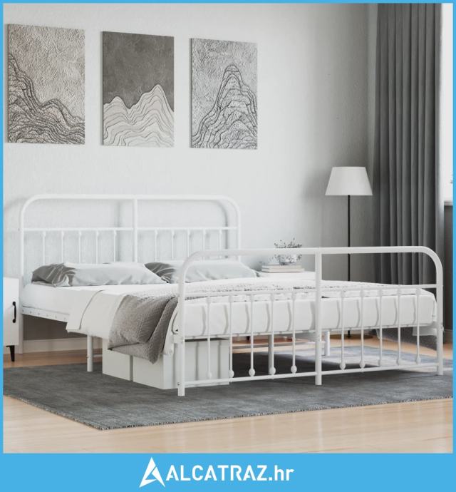 Metalni okvir kreveta uzglavlje i podnožje bijeli 180x200 cm - NOVO