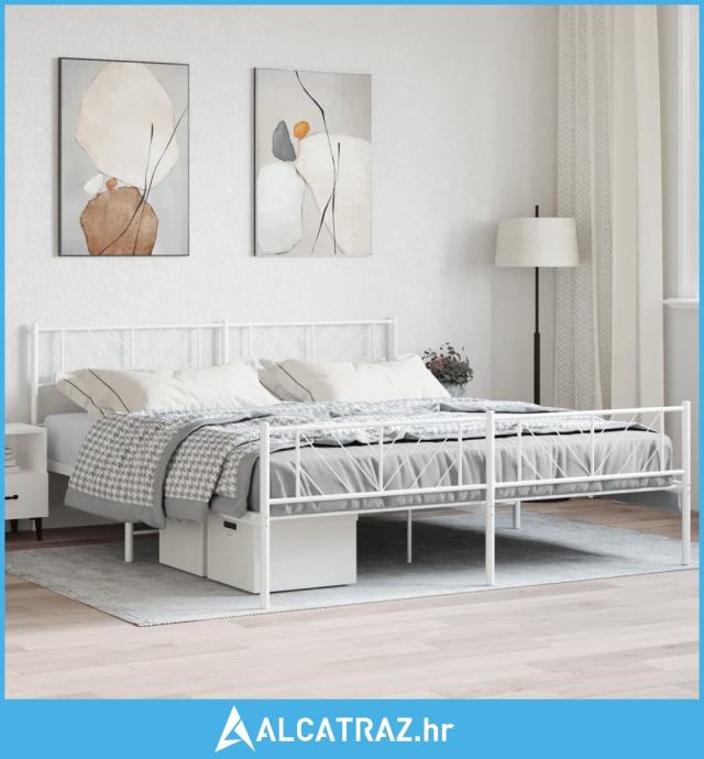 Metalni okvir kreveta uzglavlje i podnožje bijeli 193x203 cm - NOVO