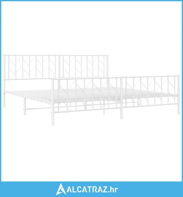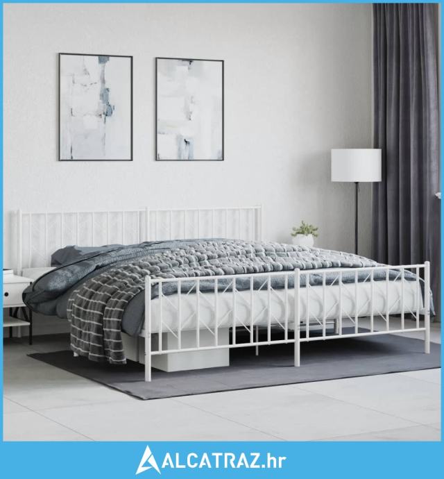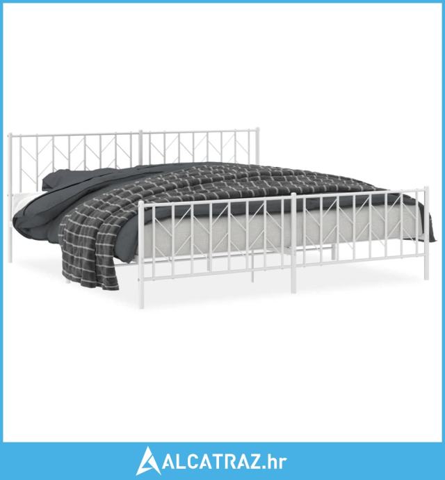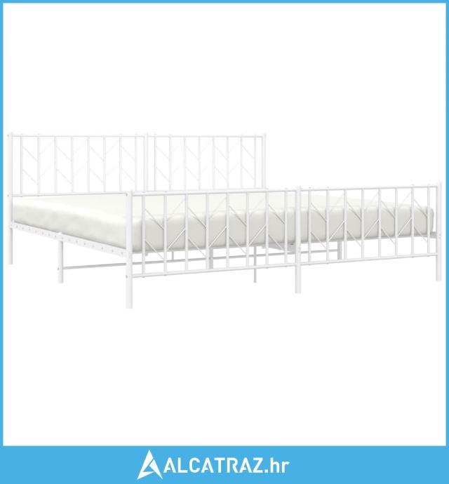 Metalni okvir kreveta uzglavlje i podnožje bijeli 200 x 200 cm - NOVO