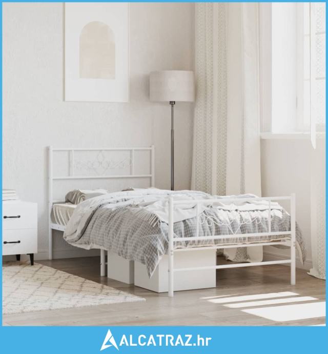 Metalni okvir kreveta uzglavlje i podnožje bijeli 75x190 cm - NOVO