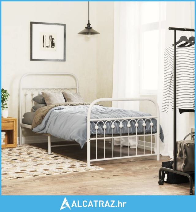 Metalni okvir kreveta uzglavlje i podnožje bijeli 90 x 200 cm - NOVO