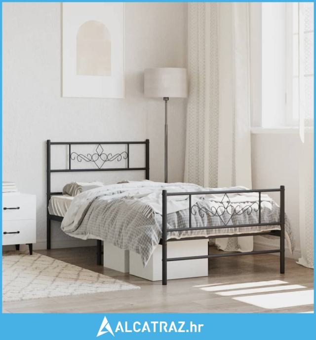 Metalni okvir kreveta uzglavlje i podnožje crni 100x190 cm - NOVO