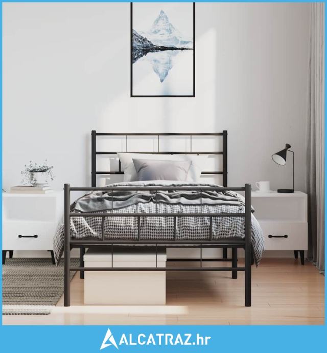 Metalni okvir kreveta uzglavlje i podnožje crni 100x200 cm - NOVO