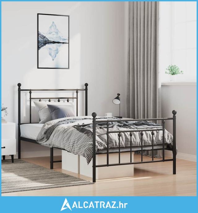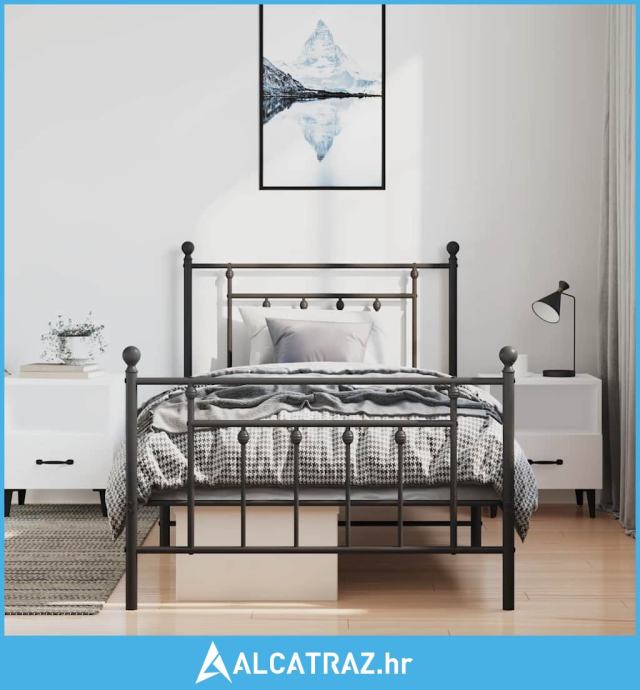 Metalni okvir kreveta uzglavlje i podnožje crni 100x200 cm - NOVO