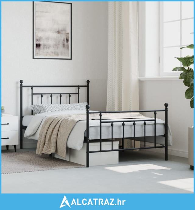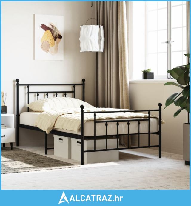 Metalni okvir kreveta uzglavlje i podnožje crni 107x203 cm - NOVO