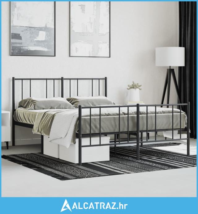 Metalni okvir kreveta uzglavlje i podnožje crni 120x190 cm - NOVO