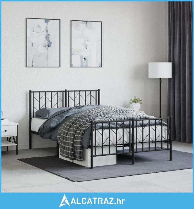 Metalni okvir kreveta uzglavlje i podnožje crni 120x190 cm - NOVO