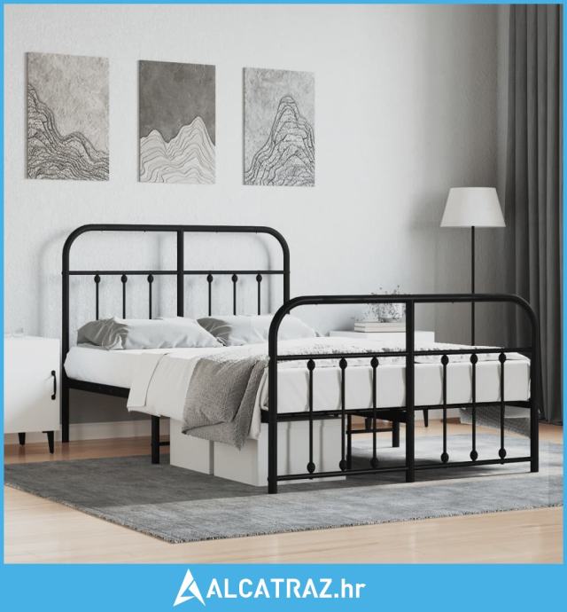Metalni okvir kreveta uzglavlje i podnožje crni 120x200 cm - NOVO