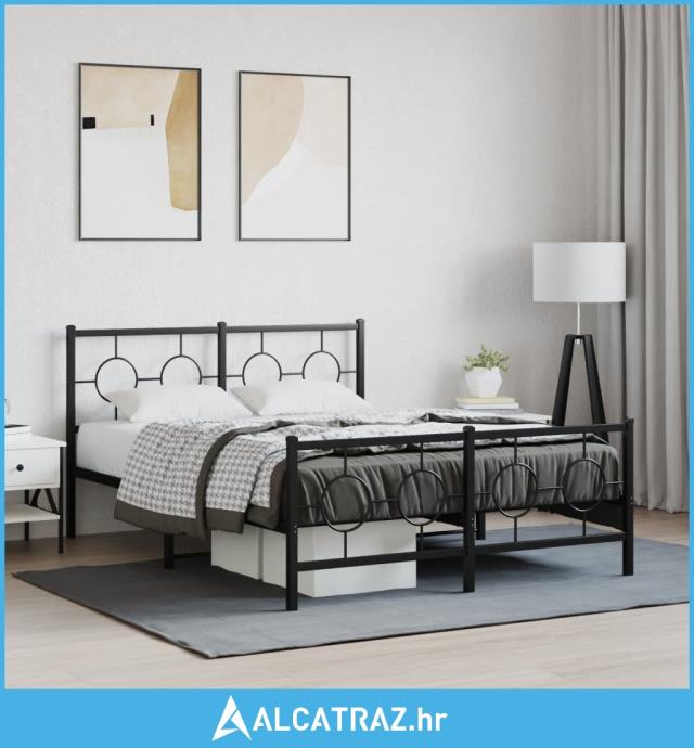 Metalni okvir kreveta uzglavlje i podnožje crni 140x190 cm - NOVO