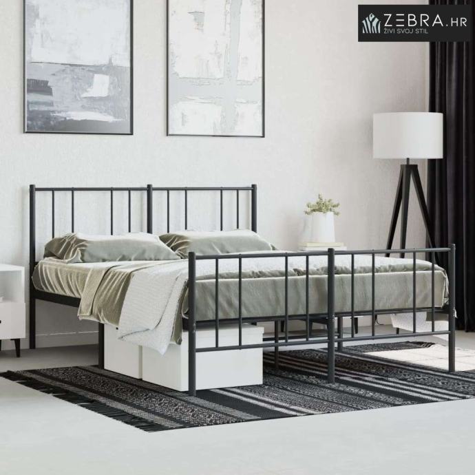 Metalni okvir kreveta uzglavlje i podnožje crni 140x200 cm - Crna 140