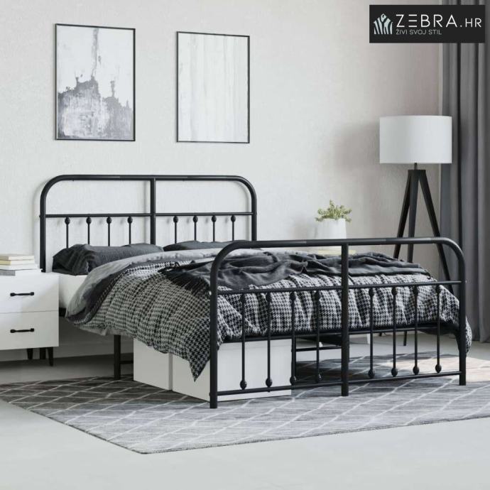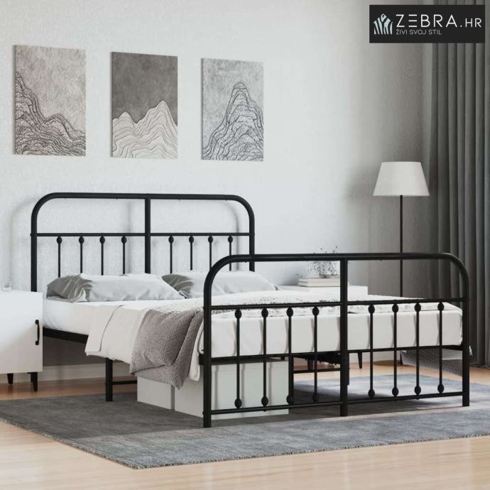 Metalni okvir kreveta uzglavlje i podnožje crni 140x200 cm - Crna 140