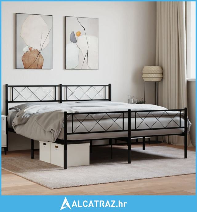 Metalni okvir kreveta uzglavlje i podnožje crni 160x200 cm - NOVO