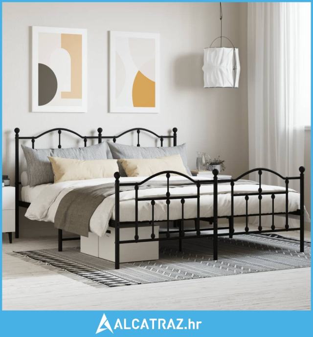 Metalni okvir kreveta uzglavlje i podnožje crni 160x200 cm - NOVO