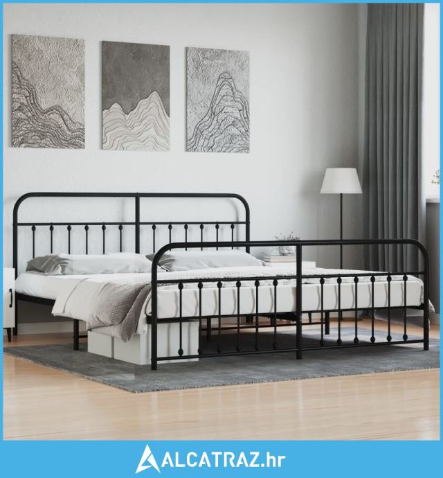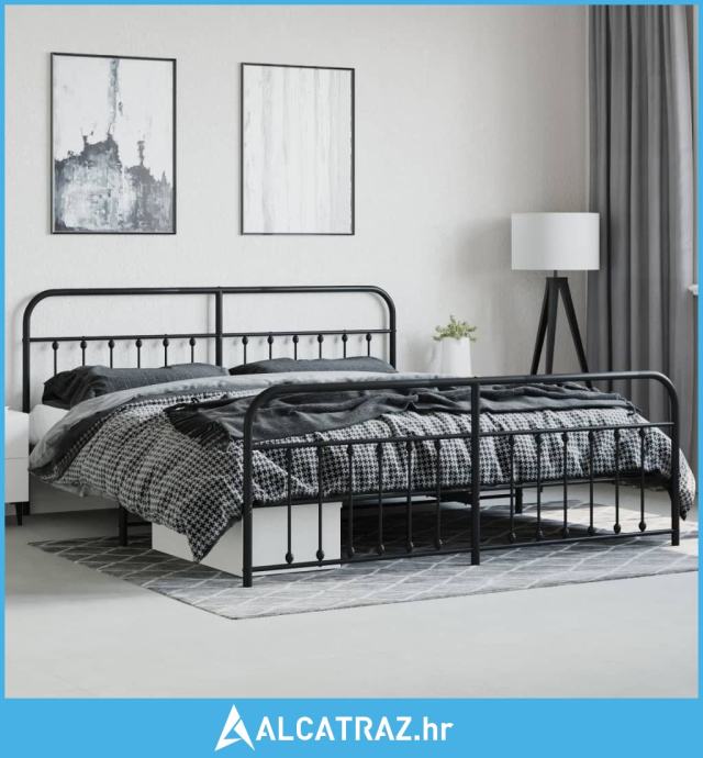 Metalni okvir kreveta uzglavlje i podnožje crni 193x203 cm - NOVO