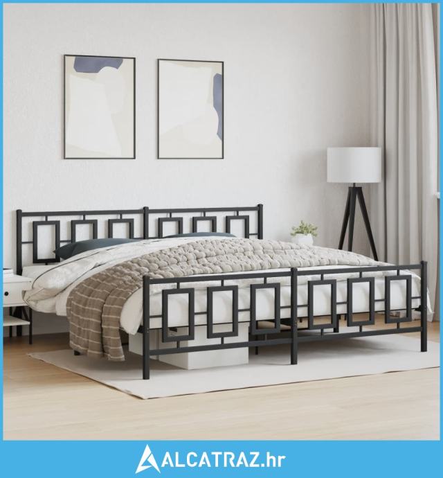 Metalni okvir kreveta uzglavlje i podnožje crni 193x203 cm - NOVO