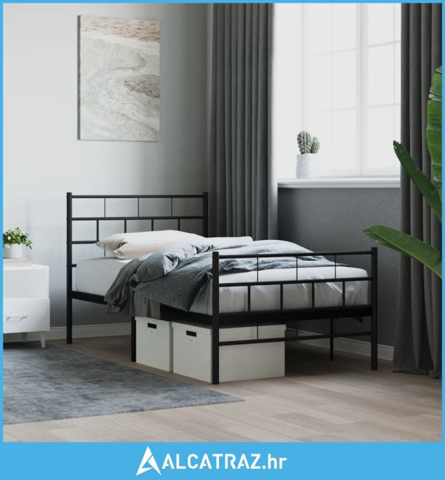 Metalni okvir kreveta uzglavlje i podnožje crni 75x190 cm - NOVO