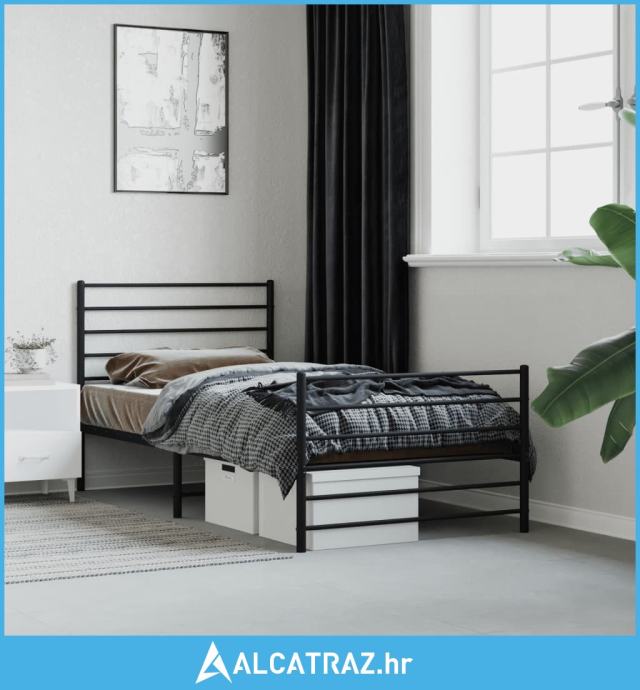 Metalni okvir kreveta uzglavlje i podnožje crni 75x190 cm - NOVO