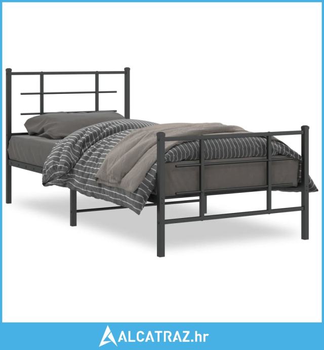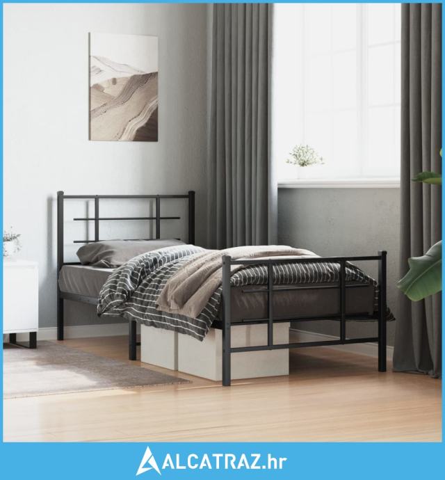 Metalni okvir kreveta uzglavlje i podnožje crni 90 x 200 cm - NOVO