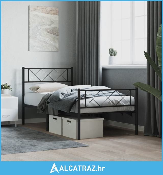 Metalni okvir kreveta uzglavlje i podnožje crni 90x190 cm - NOVO