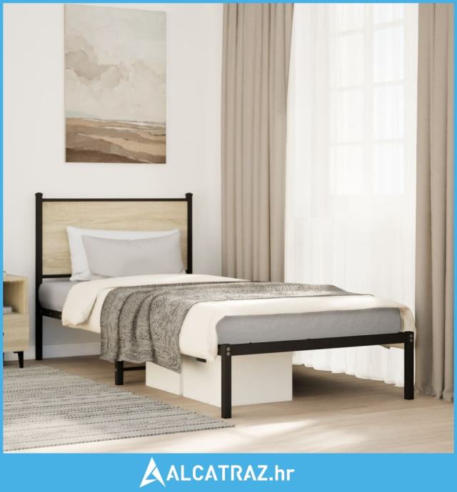 Metalni okvir kreveta s uzglavljem boja hrasta sonome 80x200 cm - NOVO