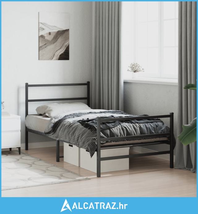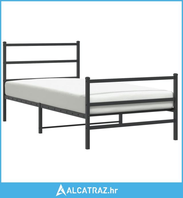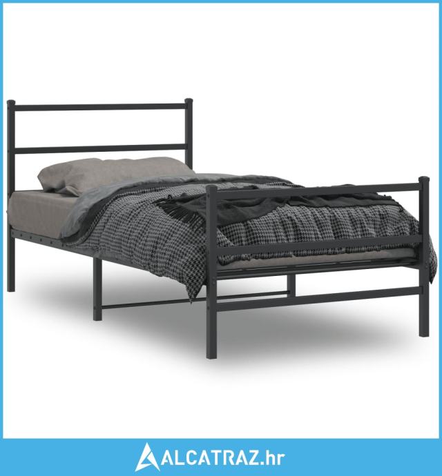 Metalni okvir kreveta s uzglavljem i podnožjem crni 100x190 cm - NOVO