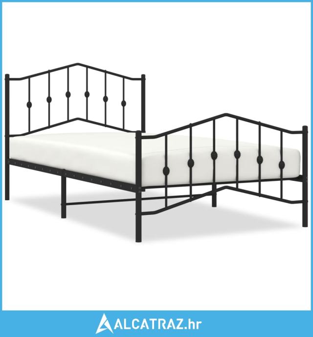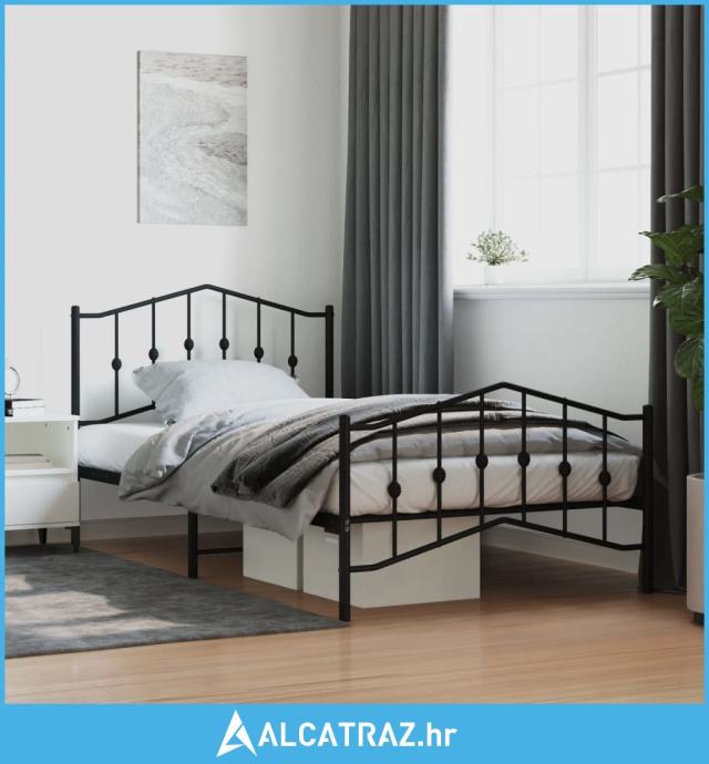 Metalni okvir kreveta s uzglavljem i podnožjem crni 107x203 cm - NOVO
