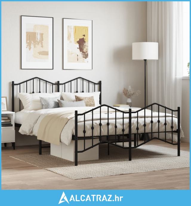 Metalni okvir kreveta s uzglavljem i podnožjem crni 140x200 cm - NOVO