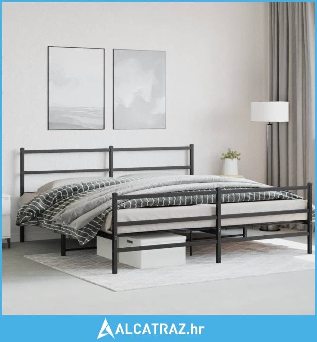 Metalni okvir kreveta s uzglavljem i podnožjem crni 193x203 cm - NOVO