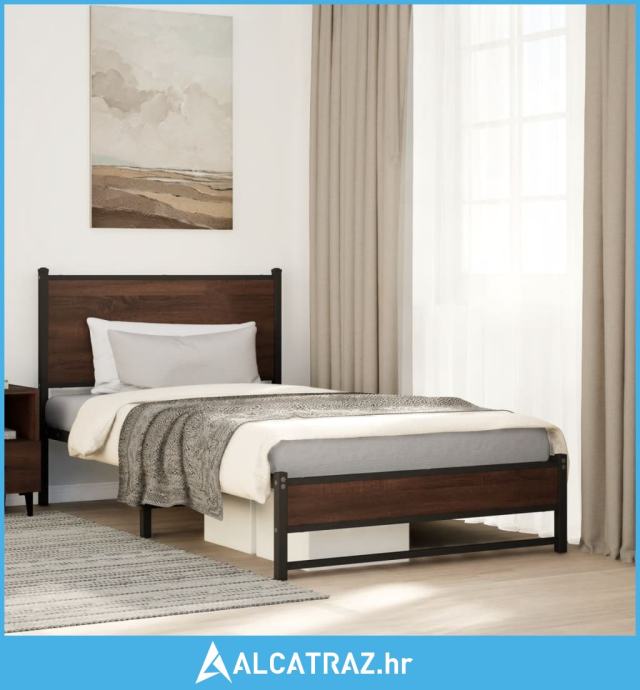 Metalni okvir kreveta s uzglavljem smeđa boja hrasta 107x203 cm - NOVO