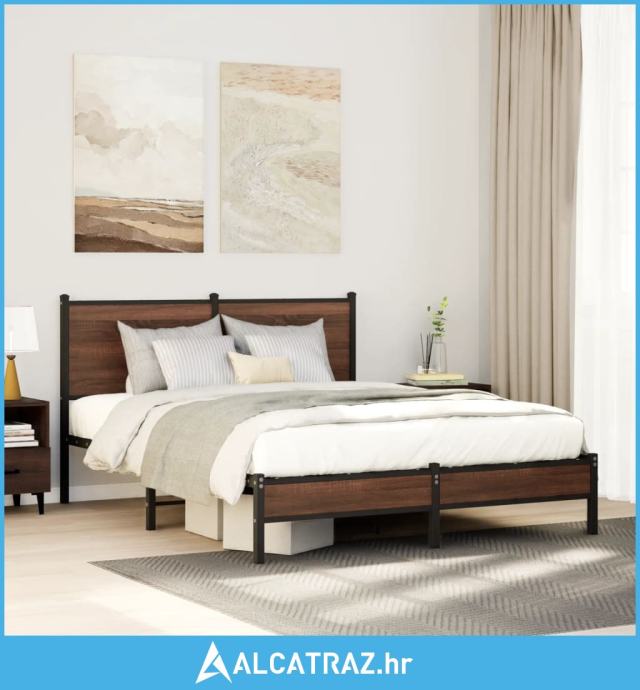 Metalni okvir kreveta s uzglavljem smeđa boja hrasta 137x190 cm - NOVO