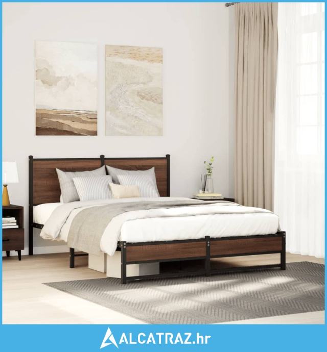 Metalni okvir kreveta s uzglavljem smeđa boja hrasta 140x200 cm - NOVO