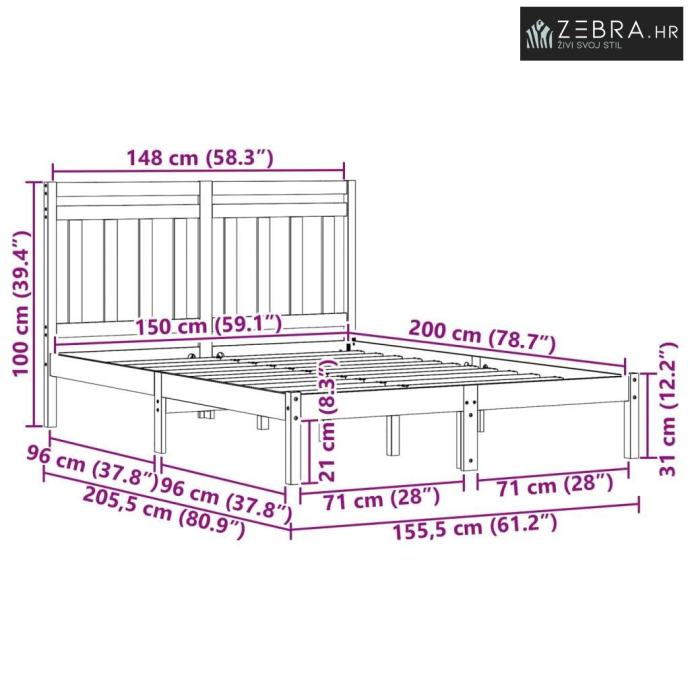 Veličina madraca: Britanski king (150 cm x 200 cm / 60" x 78")