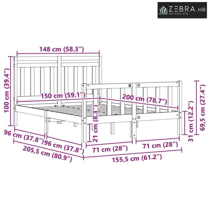 Veličina madraca: Britanski king (150 cm x 200 cm / 60" x 78")